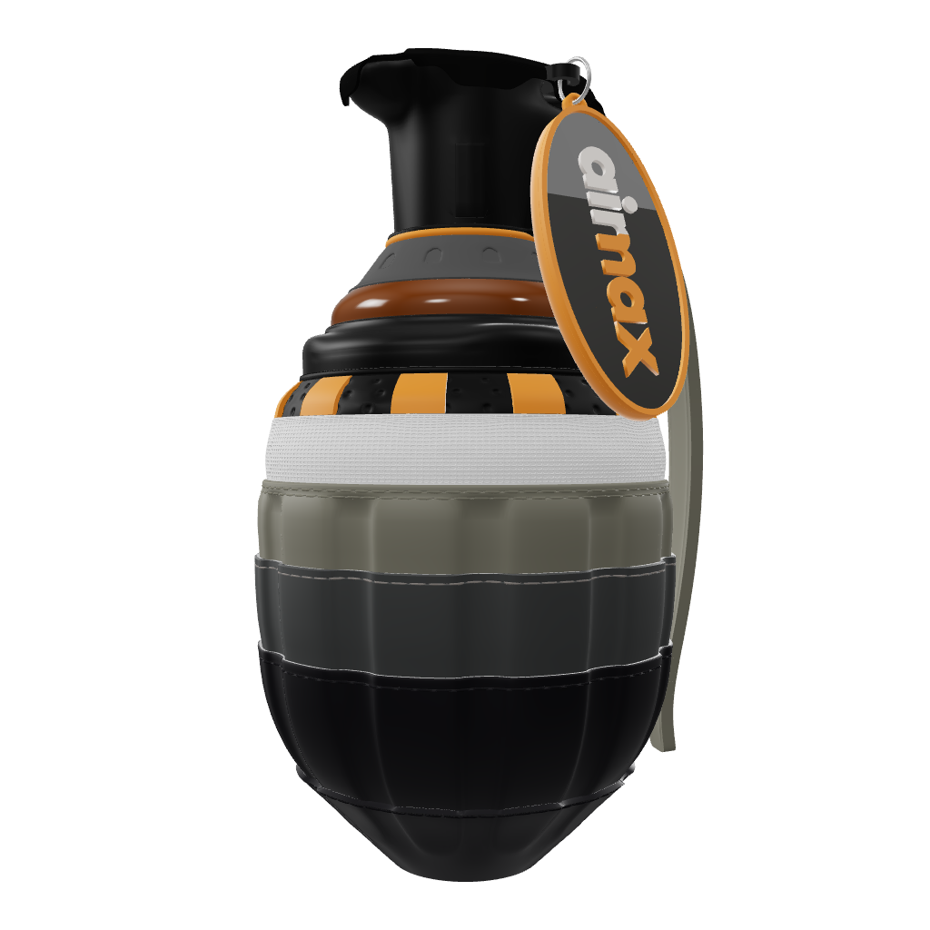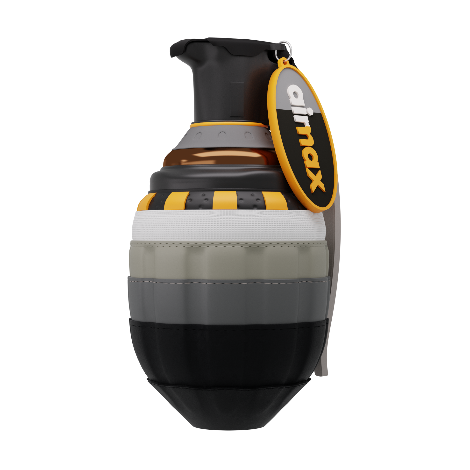 Each grenade is crafted from 25 assembled parts, featuring an epoxy resin bubble and a hanging Airmax logo. Clear-coated for protection. Approximately 24 hours go into every piece,