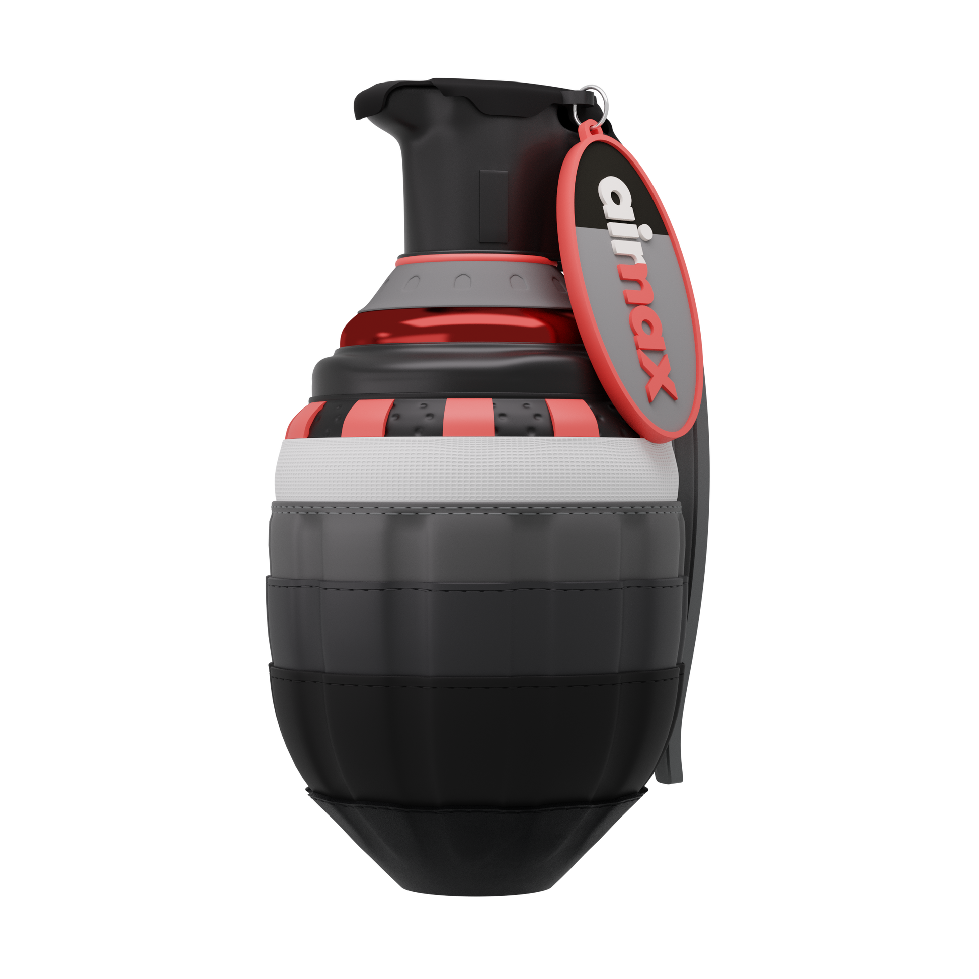 Each grenade is crafted from 25 assembled parts, featuring an epoxy resin bubble and a hanging Airmax logo. Clear-coated for protection. Approximately 24 hours go into every piece,