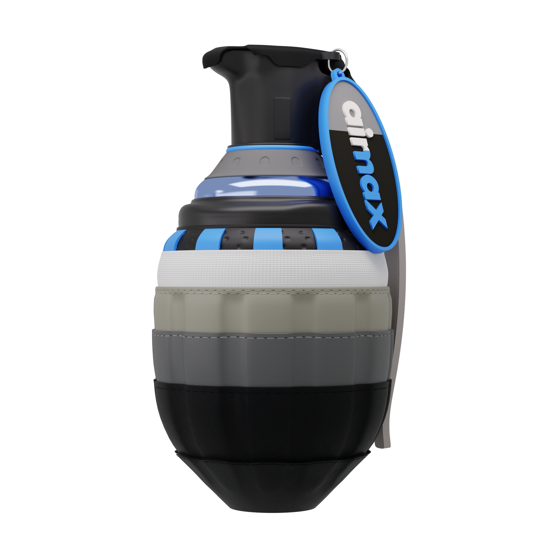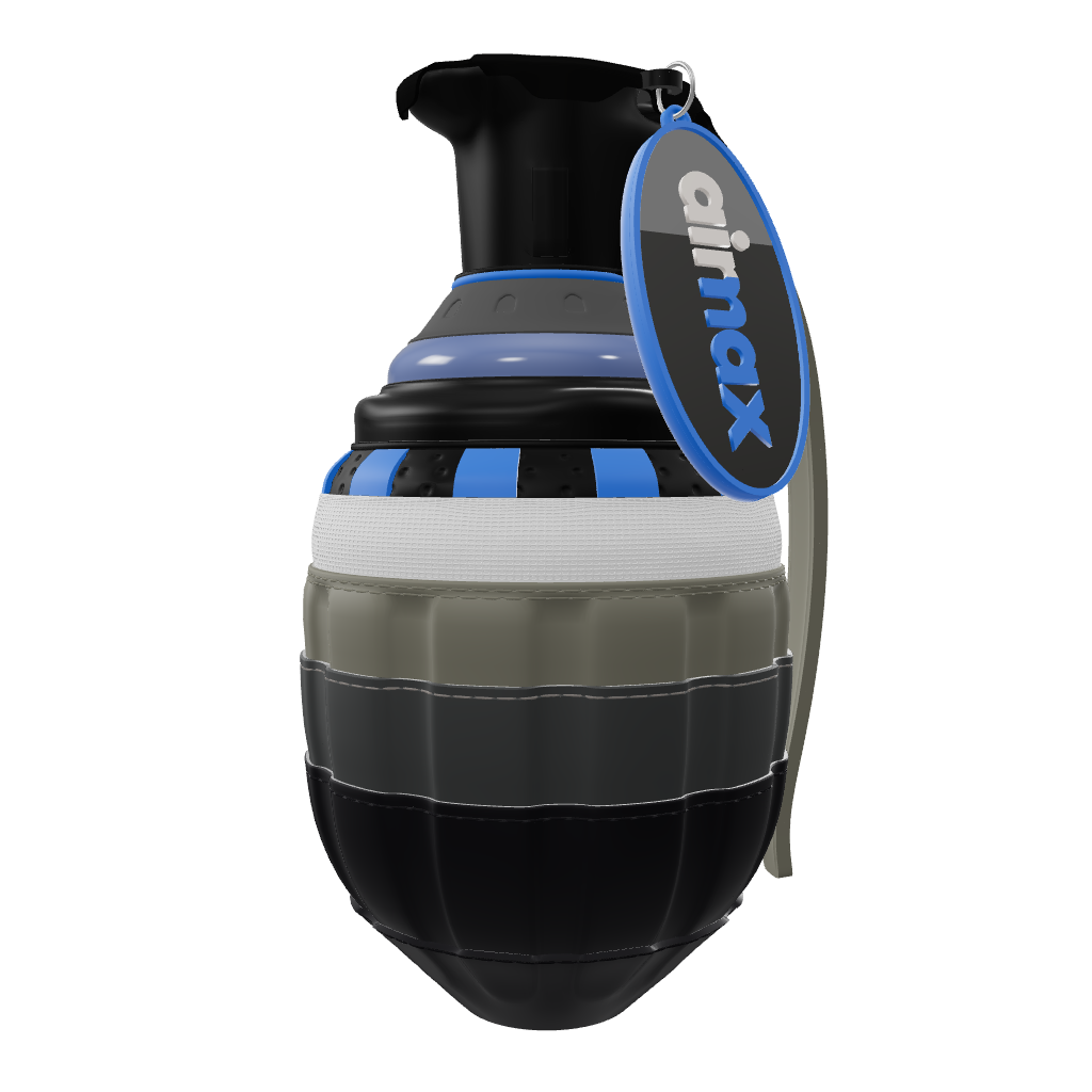 Each grenade is crafted from 25 assembled parts, featuring an epoxy resin bubble and a hanging Airmax logo. Clear-coated for protection. Approximately 24 hours go into every piece,